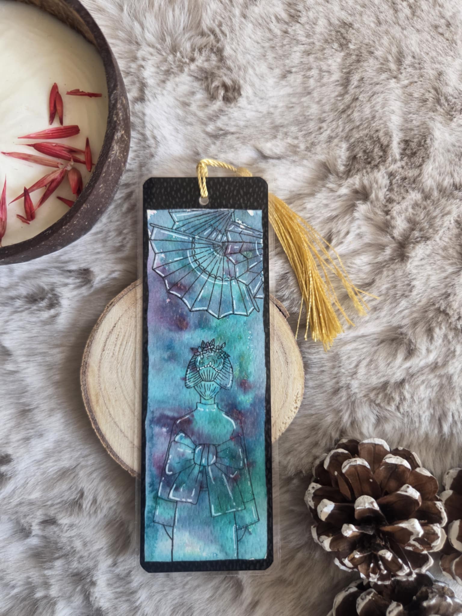 Marque-page fait main à l’aquarelle "Cosmic orient"